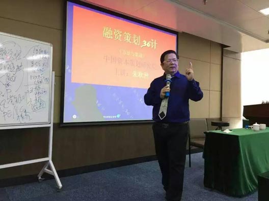 (图为朱博士为清华大学金融投资与资本运营总裁高级研修班(第34期)”的学员授课)