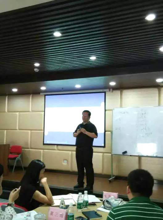 (图为朱耿洲博士在成都为北大《顶层设计与投融资策略高级总裁研修班》授课)