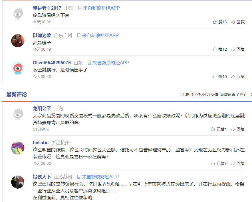 只有贸易行为是真实的前提之下,才能进一步讨论应收账款的虚实。如果贸易行为本身是虚构的,则对应的应收账款也将成为无源之水,进而所谓理财产品的底层资产也不复存在。