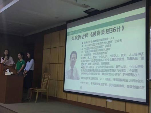 8月20、21日,中国资本策划研究院(CCP)院长朱耿洲博士应中山大学高等继续教育学院行知优才研究中心的邀请,再次来到中山大学中文堂,为“中山大学总裁高级工商管理课程研修班(42、43期)”学员授课,授课主题《融资策划36计》(方法与渠道),朱耿洲博士结合当前广东新的融资环境和状况系统地讲述了融资的36种大的渠道200多种融资方法,大量的案例分析和讲述了广东中小企业融资难的破解之道,学员们反响热烈,好评如潮!