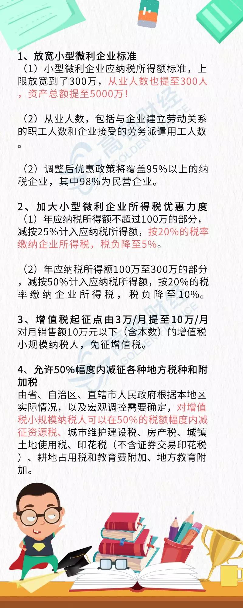 1、增值税起征点,小型微利企业税负将降至5%和10%