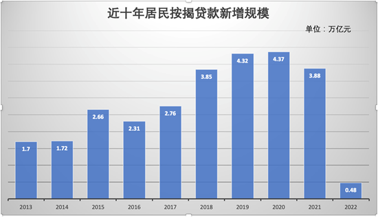 央行统计显示,2022年末,个人住房贷款余额38.8万亿元,较2021年新增4800亿元,同比增长1.2%。