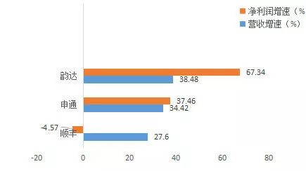 根据已公布2018年业绩的三家快递公司财报,顺丰营收虽然仍高居第一,但仅为27.6%的增速已然垫底,低于申通的34.42%与韵达的38.48%;净利润更是惨不忍睹,同比增长-4.57%,远远落后申通的37.46%与韵达的67.34%。