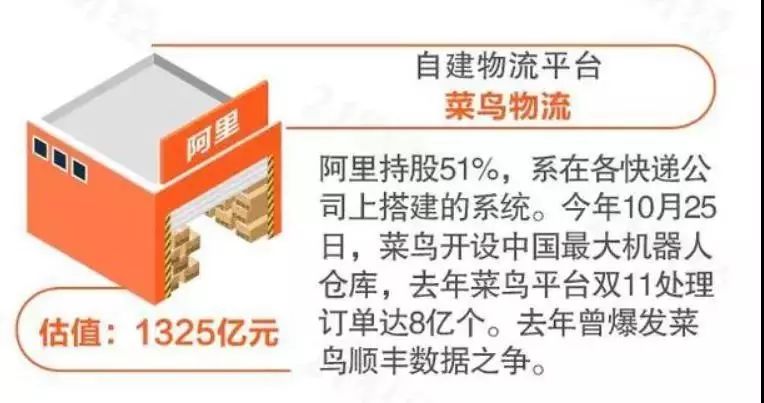 截至2018年底,菜鸟物流的市场估值已经达到1325亿元。